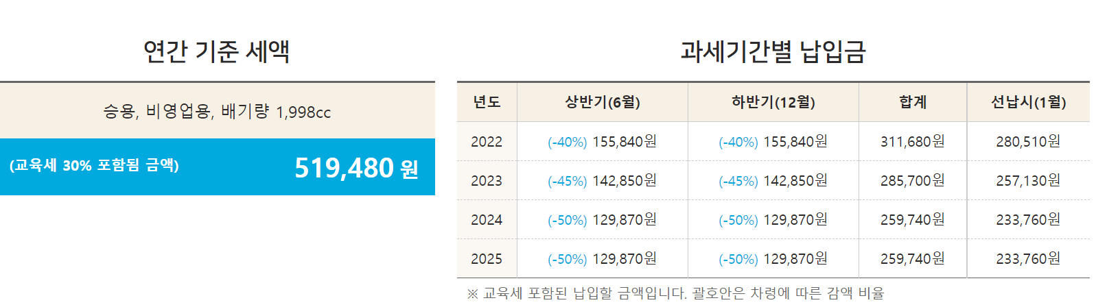 - 자동차세(1998cc)