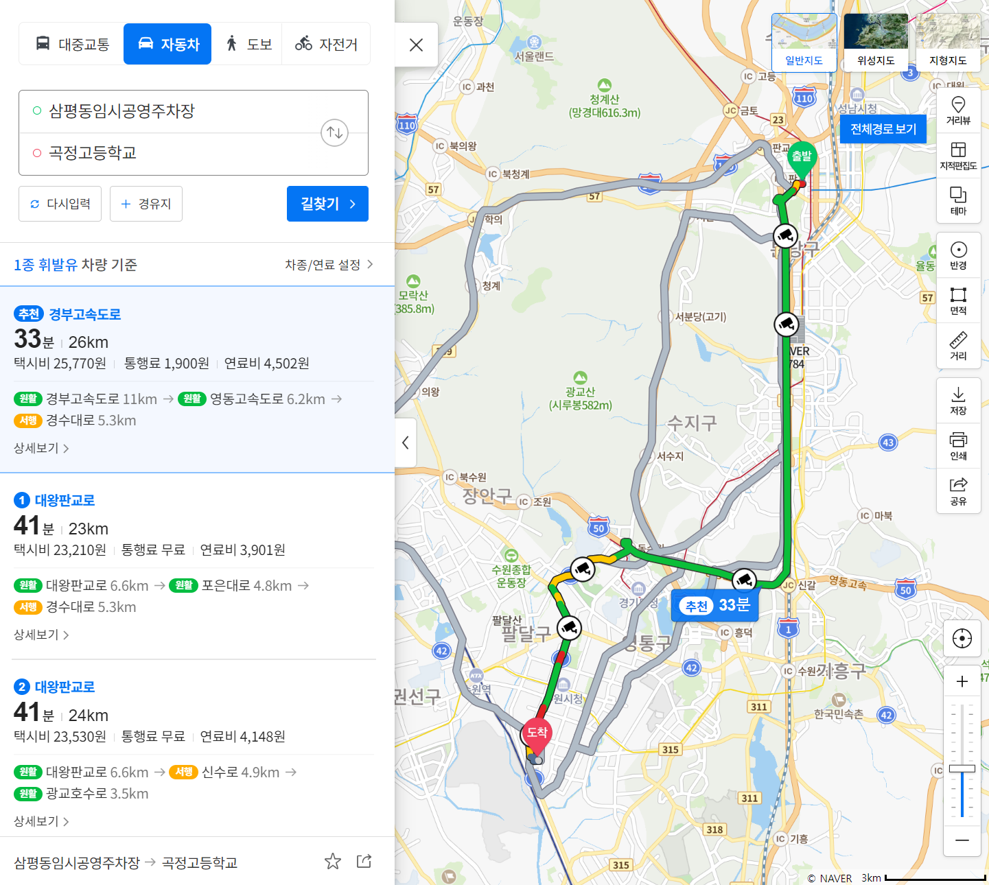 수원 권선동에서 성남 판교까지 통근하는 방법과 비용을 계산해보았다.
